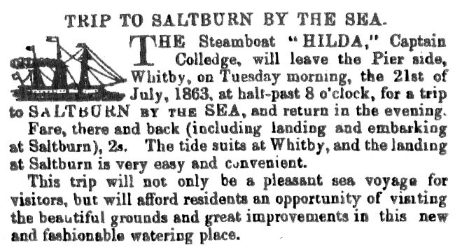 Research by Rebecca Hilton. Collecting primary source materials, articles and extracts from books related to the development of both Saltburn's and trying to validate them has offered conflicting information, much of which is often difficult to validate as many sources can prove to be unreliable e.g. newspapers or census data. Every effort has been made to ensure that the information on the history of the town presented here is as accurate as possible.