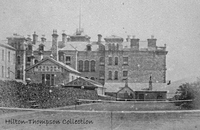 In his visitor’s handbook of 1863, George Tweddell wrote that the Hotel was built: ... in the Italian Style... of firebricks... It is five storeys in height, but there are no windows in the front elevation of the lower storey.The front and sides have spacious terraces, with perforated ballustrades of terra-cotta, surmounted with vases of flowers: and a neat balcony runs along the whole front of the middle storey. A semi-circular tower rises in the centre of the front, which is used as a telescope room, and is provided with another balcony; and both from the top of this tower and the balcony the view is gorgeous. The hotel contains about ninety rooms, comprising about fifty bedrooms, a large dining and coffee room, a ladies coffee and drawing room, reading room, smoking room, billiard room etc